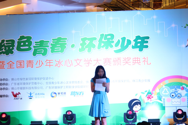 2015年6月13日,绿色青春·环保少年暨全国青少年冰心文学大赛颁奖典礼在佛山市禅城区万科广场隆重举行。本次活动由佛山市绿色家园环境保护促进中心主办,我院循环经济与低碳经济系协办,广东省环境保护宣教中心、全国青少年冰心文学奖组委会、佛山市教育局、佛山市环境保护局和珠江青少年报等作为活动支持单位。活动当天,我院循环经济与低碳经济系齐水冰主任、洪佳勤辅导员和学生志愿者队伍参加了本次活动。