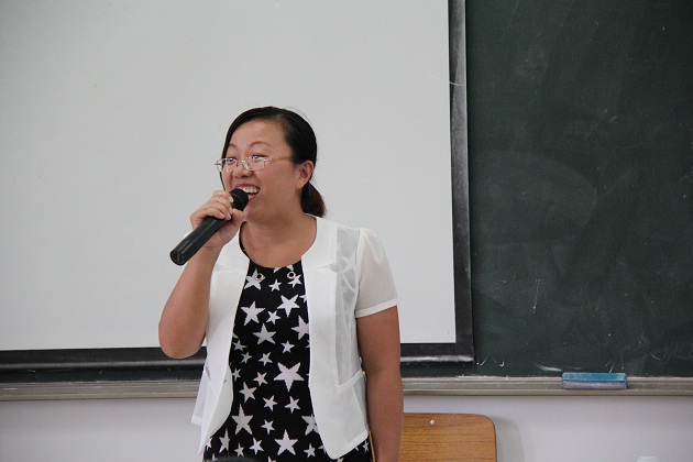 图4.北控水务集团华南业务区人力资源姚梅花总监给北控班学生作实习动员