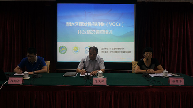 接下来,VOCs调查技术组紧锣密鼓地开展培训工作,提供技术指导。5月27日至28日,调查技术组召集珠三角九市一区主要的环保工作人员在广州进行了本项目的第一次培训工作;6月5日,调查技术组协助佛山市环保局对乡镇级环保部门工作人员进行了集中培训;6月8日至6月12日,项目技术组赴梅州、韶关与湛江召集粤东西北片区项目相关环保部门工作人员进行了三次集中培训。