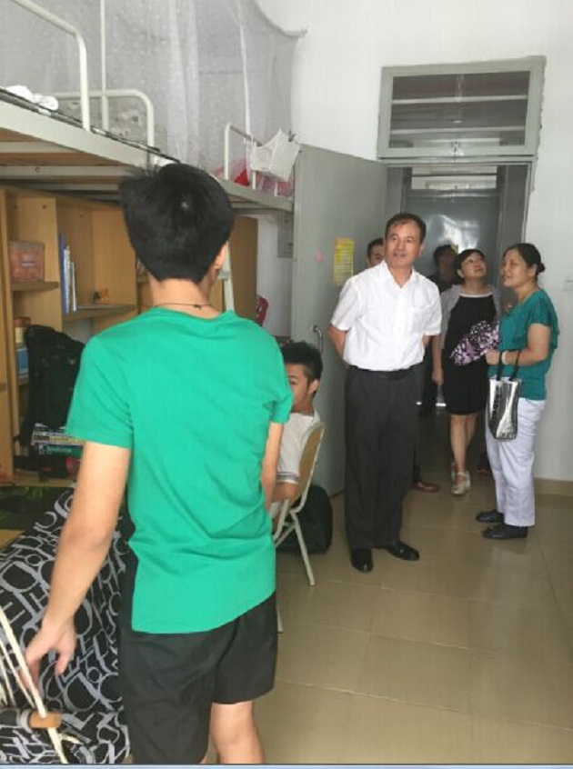 7月7日,在2013级同学离校之际,学院党委书记陈文韬、副院长奚创旭,在党办、学工部、总务部的负责同志和各系辅导员的陪同下,深入学生宿舍进行走访慰问。
