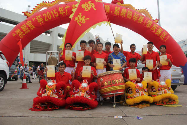 暑期,由广东省社会体育中心主办,肇庆市体育局承办的2015年广东省“洪煕官杯”传统龙狮、麒麟锦标赛在肇庆体育中心荷花馆隆重举行。我院龙狮代表队力压全省各大高校70多支参赛队伍,继去年问鼎该项比赛冠军后,再度荣获醒狮队比赛青年组群狮一等奖。