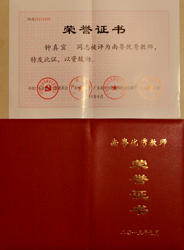 【喜讯】我院钟真宜老师荣获广东省2015年“南粤优秀教师”称号