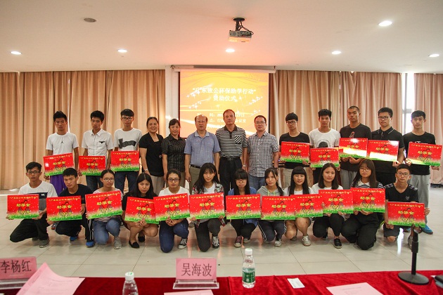 10月27日,广东致公环保助学行动资助仪式在我院举行。致公党广东省委会副巡视员许国强、联络处主任科员吴海波,我院党委书记陈文韬,党委副书记、纪委书记李杨红出席,学生工作部副部长张朝清主持仪式。