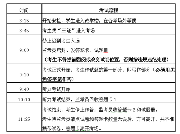 3.考试当天必须按规定的时间入场,迟到考生禁止入场。入场时必须主动出示“三证”:身份证、准考证、学生证,证件不全者,不得参加考试,请各位考生引起高度重视。