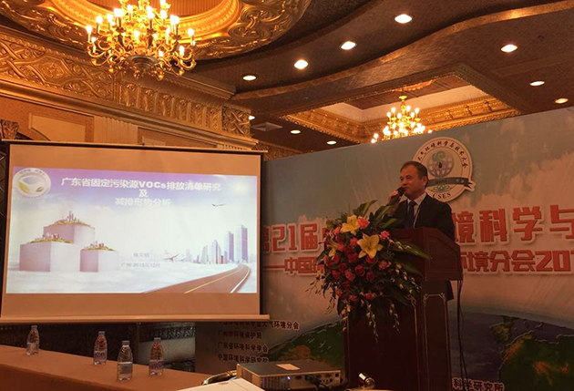 会上,陈文韬书记主持了空气质量模拟与预报预警分会场,并作主题为“广东省固定污染源挥发性有机物(VOCs)排放清单研究及减排形势分析”的报告。他介绍了我省落实国家“大气十条”以来环境空气质量现状,指出了臭氧是影响我省空气质量全面达标的首要污染物,明确了固定污染源VOCs排放贡献对臭氧生成的重要贡献,强调了我省开展固定污染源VOCs排放情况摸底调查工作的必要性,分析了我省臭氧污染控制与VOCs减排形势分析。报告受到与会专家同仁的高度赞同,引起激烈讨论。