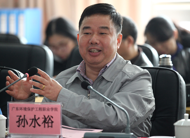 刘晓冰副院长从建设目标和思路、建设基础、建设任务、预期成效等六方面对环保协同育人中心建设实施方案进行了汇报。核心协同单位代表广东省环境保护产业协会李鸿涛部长也作了发言。