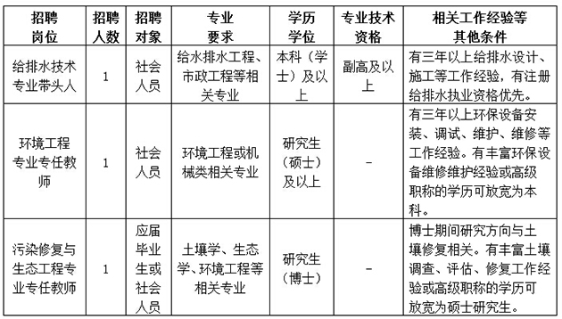 因工作需要,环境工程系面向社会招聘专任教师3名。