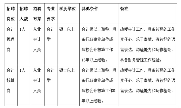 因工作需要,学院财务部需招聘会计人员2名。