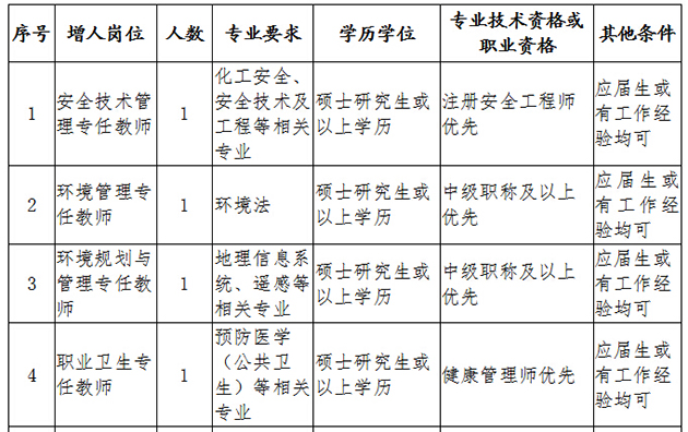 因工作需要,环境科学系面向社会招聘专任教师4名,具体要求如下: