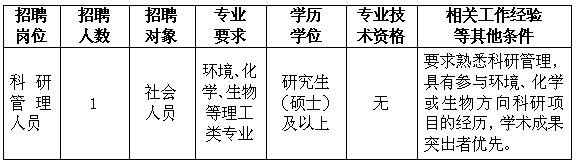 因工作需要,科研部面向社会招聘科研管理人员1名。