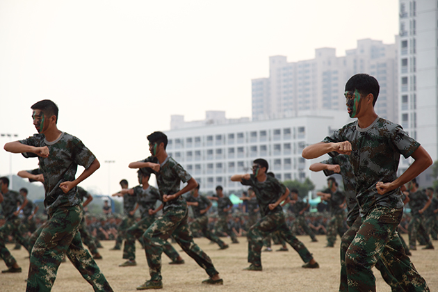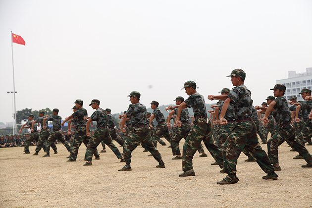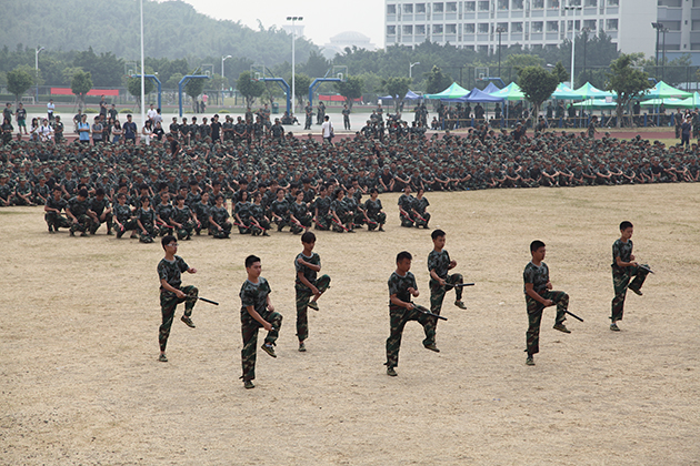 大会在2016级新生的分列式表演中拉开帷幕。随后,在承训部队教官的带领下,同学们为大家献上了精彩且充满力量的军体拳、匕首术、擒敌术、反恐战术及双截棍表演。