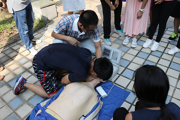 洗眼器使用的演示在实训楼D栋化学实验室中进行,由实训中心老师讲解与示范洗眼器的使用方法,并让同学们参与其中,得到良好的学习效果。氨水泄漏应急处理演习在实训楼D栋化学实验室中进行。演习程序包括在实训室模拟氨水泄露事故的发生,事故发生后的紧急上报、安全疏散、事故现场处理等。最后,实训中心三位老师分组进行了触电急救演示,同学们认真观看学习,并与老师们积极互动。