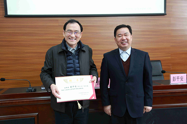 孙水裕院长为彭平安院士颁发学术委员会名誉主任和终身客座教授聘书