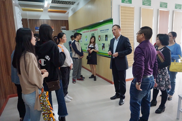 仪式结束后,陈文韬书记、黄小刚董事长一行参观了物理污染实训室及环境工程系教师微格工作室。本实训室由佛山天戈科技有限公司捐献吸声材料和设备并装修而成,满足了物理污染治理课程的实训教学、老师科研及学生创新创业发展的需要。