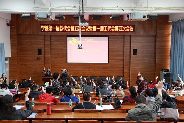 3月27日,我院第一届教职工代表大会第五次会议暨第一届工会会员代表大会第四次会议在教学楼116室开幕。学院领导陈文韬、孙水裕、李杨红、奚创旭以及来自全院的教职工代表、工会会员代表100余人出席会议。工会副主席孙耿乐主持大会。