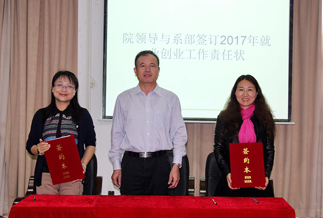 陈文韬书记与各系部负责人签订2017年系部就业工作责任目标书