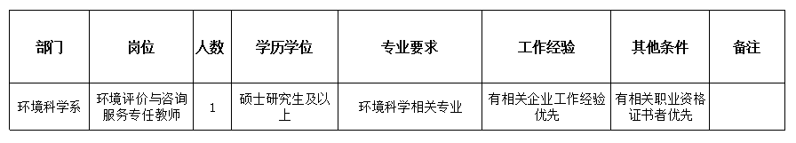 因工作需要,环境科学系面向社会招聘专任教师1名。